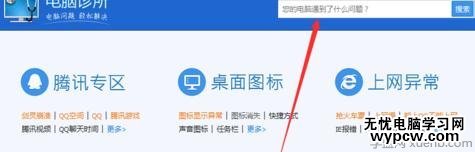 6點擊打開“電腦診斷‘,進入如圖所示的電腦診斷頁面,上面有具體電腦問題的分類,點擊上網異常,或者在圖示箭頭標識的地方輸入”電腦連不上網“就可以了。