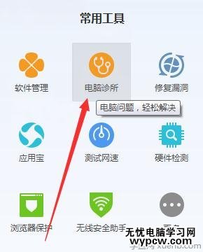 如果你沒有出現上面所列出的種種問題,那么你可以登錄360或者電腦管家,這里以電腦管家為例,點擊打開電腦管家,在電腦管家里面找到電腦診斷,操作如圖所示。