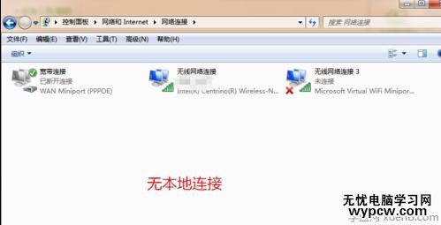 點擊開始——控制面板——網絡和Inte.net——網絡和共享中心——更改適配器設置,我們會發現這里沒有本地連接,