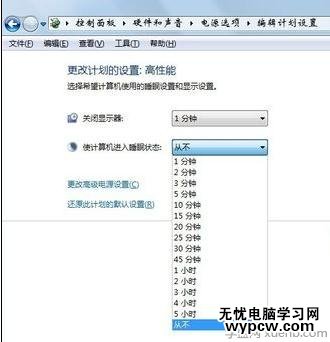 隨便點擊一個進入都會進入下列頁面,在關(guān)閉顯示器列表中,選擇最短的黑屏?xí)r間。