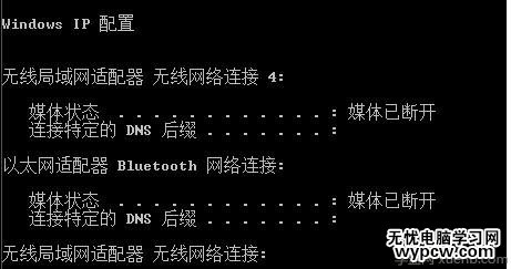 然后回車。接著出現(xiàn)黑色的窗體,接著輸入下面的命令 ipconfig (第二個命令) 然后回車,可以看到下面的結(jié)果圖: