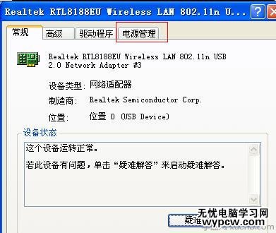 彈出的對話框中點擊:屬性——》常規(guī)——》配置——》電源管理。