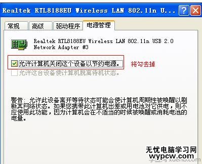 將“允許計算機關閉這個設備以節(jié)約電源”選項前面的勾給去掉,然后確定——》關閉