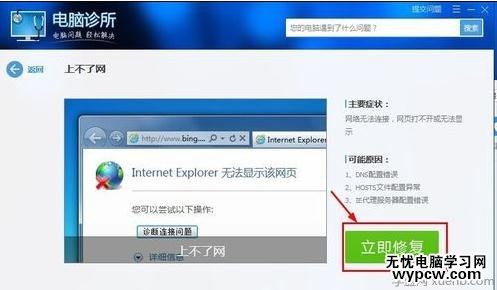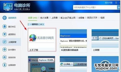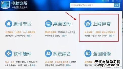 電腦診所里面可以解決各種問題,如桌面圖標(biāo)問題、軟硬件問題等,下面示例上網(wǎng)異常。