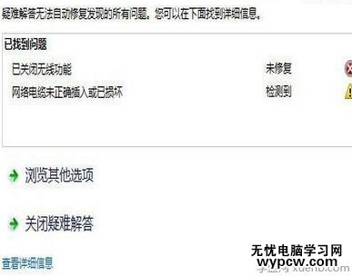 這時候就會彈出向導,進行自動診斷。有的情況它會自動進行修復,部分的問題利用Windows診斷就可以解決。