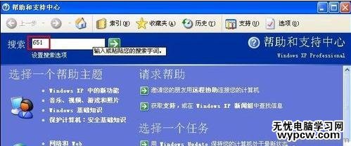 在搜索框鍵入錯誤代碼,如“651”,然后按回車鍵搜索