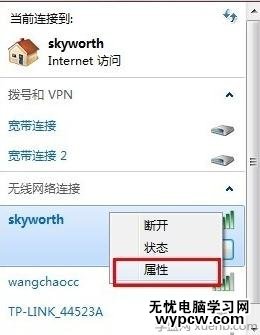 那基本可以斷定連接不上都是因?yàn)槊艽a問題,因?yàn)殡娔X能接受到無線網(wǎng)絡(luò)信號(hào)就說明一切正常,接下來就是修改密碼,那怎么改呢?請(qǐng)看小編如下操作,選擇wifi連接,右鍵屬性.