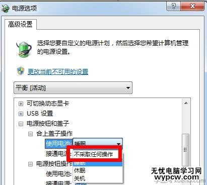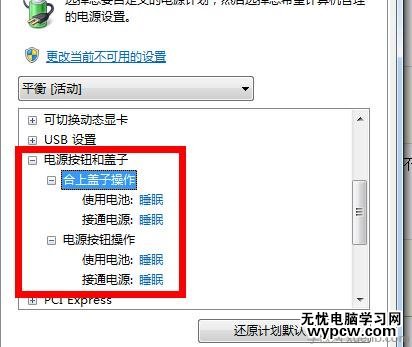在命令里會出現一個電源按鈕和蓋子的選項,我們找到。點擊前面的加號,然后出現新命令,選擇所有都為非不采取任何操作。