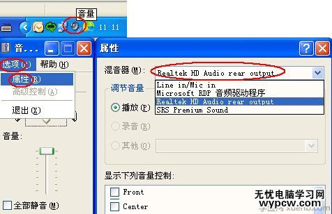 如果還沒有聲音,而又如果你安裝了其它媒體控制軟件,可以將“聲音輸入”和“聲音輸出”都改為所安裝的媒體控制軟件,同時調節好音量: