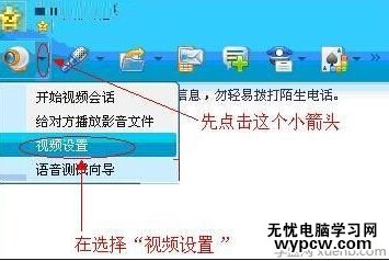 如果沒有上面這個錯誤提示,則在彈出的聊天窗口的工具按鈕欄中選擇視頻設置: