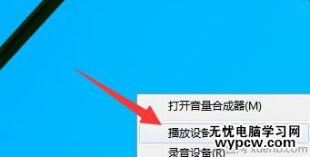 5、待更新聲卡驅動程序后,如果Win10還是沒有聲音,則我們需要對Win10聲音進行相關設置。右擊任務欄“聲音喇叭”圖標,從其右鍵菜單中選擇“播放設置”項;