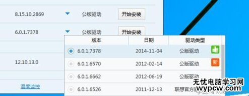 2、當然,我們也可以點擊“聲卡”驅動類型下拉列表,從中根據自己的需要以及實際情況,選擇相應版本的驅動程序,通過升級或更新來獲取最佳Win10聲音效果;