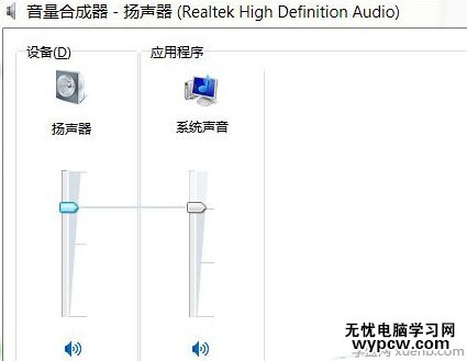 9、此外,點擊任務欄“小喇叭”圖標,從其右擊中選擇“音量合成器”項進入詳細設置界面;