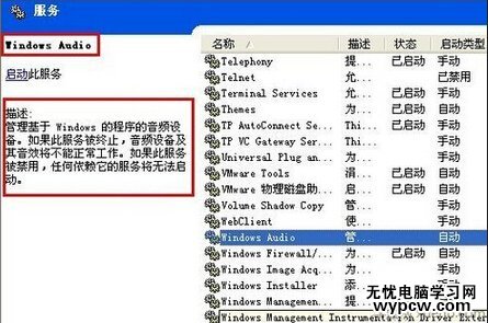 4、下面小編講一個大家容易忽略的問題,那就是“服務”。許多程序的運行都依賴著它相關的服務,如果服務未開啟的它,它就不能正常運行,聲音也有依賴的服務就是windows Audio,我們右擊我的電腦,點擊管理,找到服務選項,雙擊進入,找到Windows Audio選項看它是否開啟了,如果沒有,把它開啟并設為自動即可。