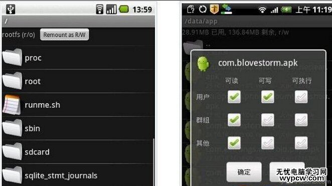 第二步、安裝RE文件管理器并掛在讀寫權限;