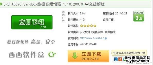 看名字就不用小編來說了吧,SRS Audio Sandbox是一款適用于個人計算機的終極音頻增強軟件。該軟件可以提供令人嘆為觀止的環繞音效、重低音效果,完美營造出不同環境的聲場,增益效果非常明顯。它特別針對音樂,音頻和游戲用戶定制了相應的音效預設值,非常方便一般用戶的使用,效果相當不錯哦, 但不幸的是不支持64位的系統。