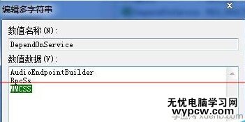 3、雙擊打開DependOnService鍵值,在打開的編輯窗口中刪除MMcss;