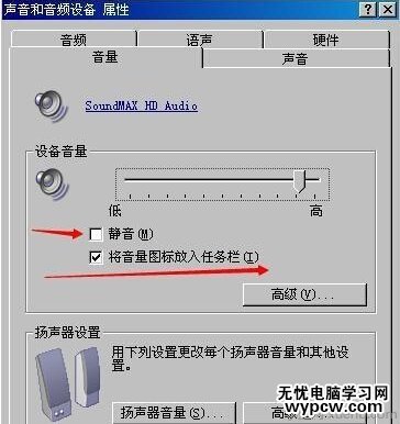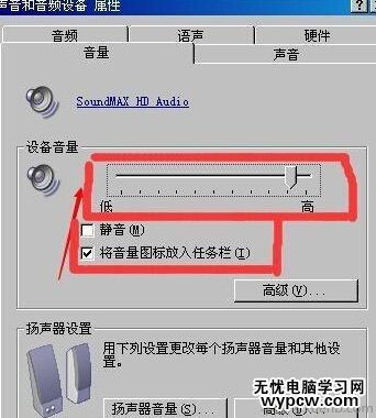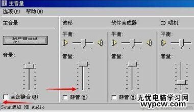2、鼠標單擊小喇叭,就會看到下圖,沒聲音的話,你看看是不是勾選了靜音。取消對勾就會有聲音了。如果音量調節按鈕在最底下,把它調節到適當的位置就會有聲音了。