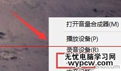 1、如果你使用的是VIA HD Audio聲卡,有可能會出現只在某些特定應用中才能聽到聲音的現象。此時可右鍵單擊任務欄的聲音圖標,選擇“播放設備”;