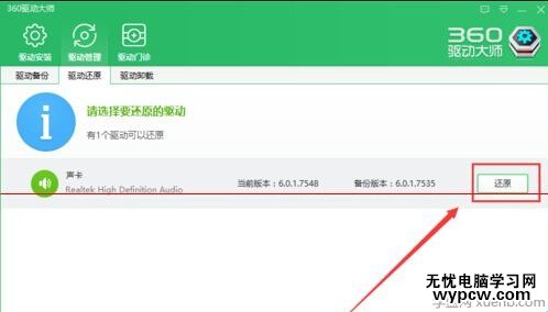 3、如果你之前更新過聲卡的驅動導致的沒有聲音 你可以到驅動軟件上去還原聲卡的驅動軟件