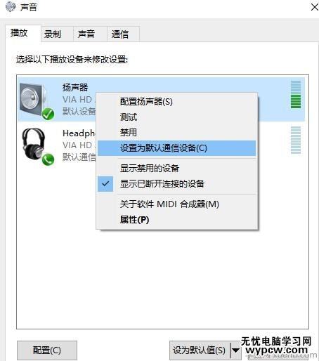 3設置為默認設備播放器,,前面為綠色的勾,就可以了