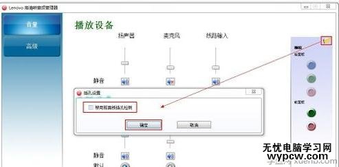 在彈出的窗口中將“禁用前面板插孔檢測”前面的勾取掉,點擊“確定”完成設置。