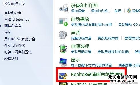 彈出頁面如圖所示,然后選擇“Realtek高清晰音頻管理器”