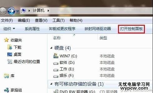 也可以打開我的電腦,在上方導(dǎo)航欄里點擊“打開控制面板”;