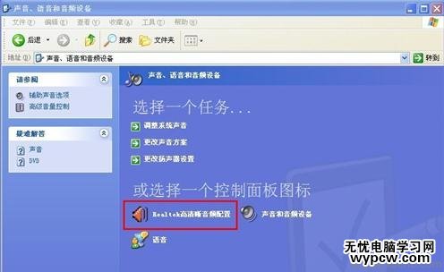 進入“聲音、語音和音頻設備”后,選擇“Realtek高清晰音頻配置”,如下圖: