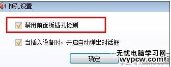 打開文件夾之后,我們可以看到設置面板,將禁用前面板插孔檢測前面的鉤鉤去掉就OK了!