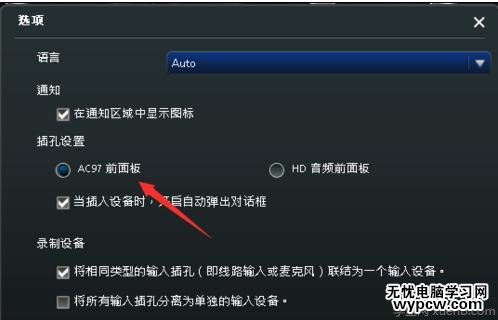注:有的沒有這個選項,但可以在在右上角設備高級設置后選取“在插入前方設備后禁用后面設備出聲”也可以。