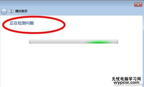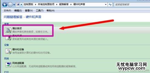 然后打開【硬件和聲音】,在【聲音】選項下,單擊【播放音頻】,然后下一步。然后可以看到系統正在檢查問題......