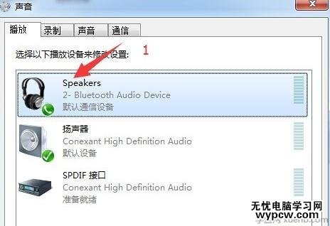 在出現的播放調備中選擇”藍牙耳機“再點擊下面的”設為默認值“然后點擊確定。
