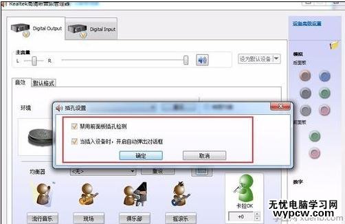 最后一步,這里就是插穿設(shè)置了,把”禁用前面面板插孔檢測“和”當插入設(shè)備時,開啟自動彈出對話框“兩個一起打勾就OK了!