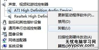 5、卸載聲卡驅(qū)動(dòng)程序,重新進(jìn)行安裝或升級(jí)聲頻驅(qū)動(dòng)程序;