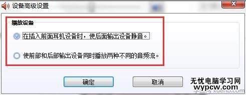 選擇“設置高級設置”,選擇第一項,即“在插入前面耳機設備時,使后面輸出設備靜音”。