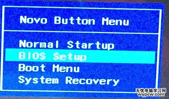 這個需要關機狀態下,點擊一鍵恢復按鈕開機,然后在屏幕上選擇BIOS SETUP 回車進入