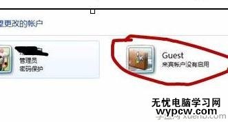 打開win7電腦控制面板,選擇添加或刪除用戶賬戶,啟用來賓賬戶。(這樣xp電腦就能)以外來賬戶訪問。