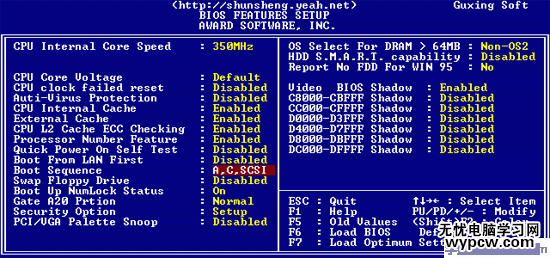BOOT SEQUENCE(開機優(yōu)先順序)這是我們常常調整的功能,通常我們使用的順序是:A、C、SCSI,如果您不需要從A盤啟動,那么可以調整為ONLY C ,即只從C盤啟動。BIOS FALSH PROTECTION(BIOS寫入保護);PROCESSOR SERIAL NUMBER(系統(tǒng)自動檢測奔騰3處理器);SWAP FLOPPY DRIVE(交換軟驅盤符);VGA BOOT FROM(開機顯示選擇);BOOT UP FLOPPY SEEK(開機時是否自動檢測軟驅);BOOT UP NUMLOCK STATUS(開機時小鍵盤區(qū)情況設定);TYPEMATIC RATE SETTING(鍵盤重復速率設定);TYPEMATIC RATE(CHARS/SEC,字節(jié)/秒);TYPEMATIC DELAY(設定首次延遲時間)SECURITY OPTION(檢測密碼方式)如設定為SETUP,則每次打開機器時屏幕均會提示輸入口令(普通用戶口令或超級用戶口令,普通用戶無權修改BIOS設置),不知道口令則無法使用機器;如設定為SYSTEM則只有在用戶想進入BIOS設置時才提示用戶輸入超級用戶口令。