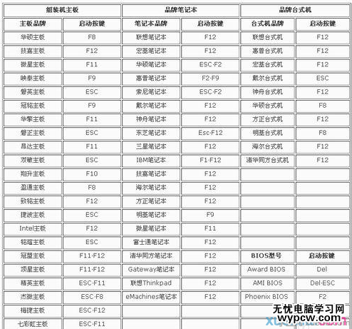 因為不同的主板開機界面的英文菜單并不一樣,所以很多人對此還是覺得無從下手。這里列出了各個電腦品牌進入BIOS的鍵值,如果是組裝機,可以參考各個品牌的主板進入BIOS的鍵值。