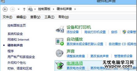 2.進入“硬件和聲音”后再進入“電源選項”;