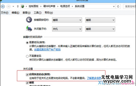 5.往下拉動頁面,就會發現Win8的快速啟動功能,你可以選擇開啟或者關閉它(強烈建議開啟)。