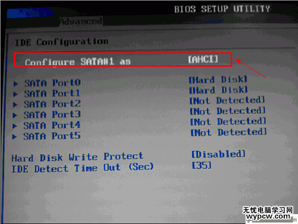 上面的圖中將硬盤改為AHCI提高sata硬盤的效率等。如果剛開始安裝系統(tǒng)可能不能識別硬盤,可以先用IDE方式的,安裝完系統(tǒng)以后安裝AHCI驅(qū)動(dòng),再改回來即可。