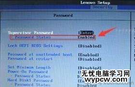2. 使用上下方向鍵選擇passWord選項,并按回車鍵進入,disabled表示當前未設置bios超級管理員密碼,如為enabled,表示當前已經設置過了bios密碼。