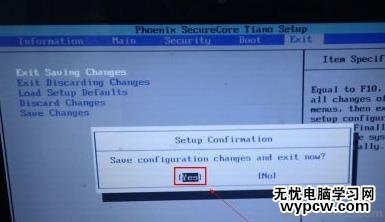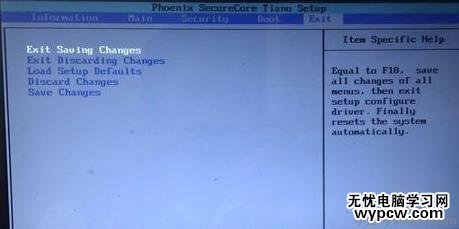按F10或再用鍵盤上的右鍵移動到【Exit】處,選擇【Exit Saving Changes】處回車再選擇【OK】