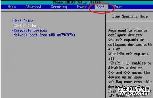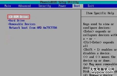接著將光標定位到“CD-ROM Driver”,并且不斷按“+”號至止“CD-ROM”上升到第一位。