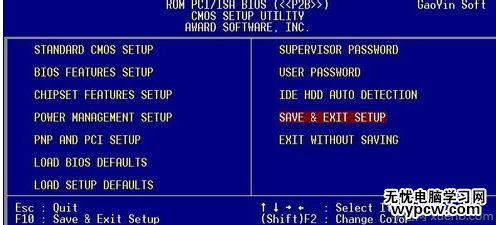 4然后按鍵盤上的“ESC”鍵返回主界面,將光標移動到“SAVE & EXIT SETUP”項并將回車鍵。