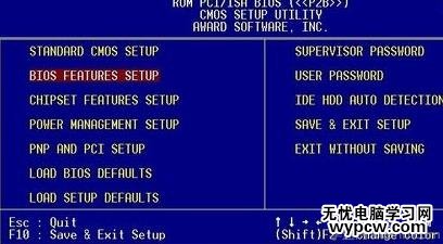 按鍵盤上下鍵將光標定位到“BIOS FEATURES SETUP”項并按回車鍵。