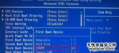 第四步、光標定位到CDROM處,然后按回車鍵: