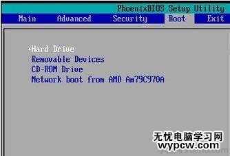 5、按鍵盤的光標的“→”,轉到Boot選項卡。這里設置虛擬機系統的啟動盤順序,把硬盤設置為第一項。方法:按鍵盤的“+”和“-”進行順序的調整。